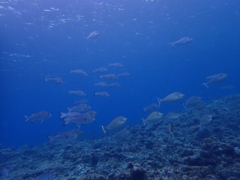 ヨコシマクロダイ&テングハギの群れが潮の流れに向かって集まってましたよ!