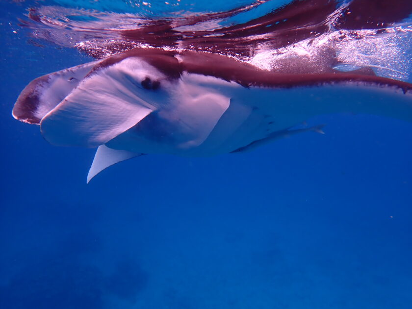 お口をガバーっと開けて水面マンタショー!臨場感がハンパない大迫力!!!