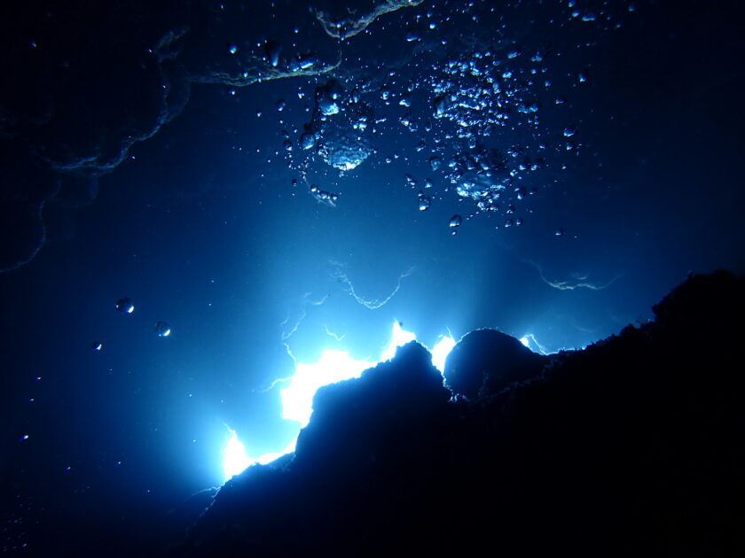 ちょうど洞窟内へダイブ中には晴れて綺麗な光が差し込んでましたよ!