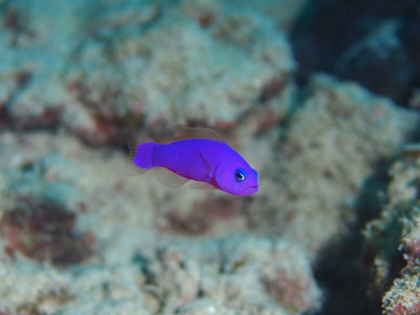青いVラインが特徴のアマミスズメダイbaby