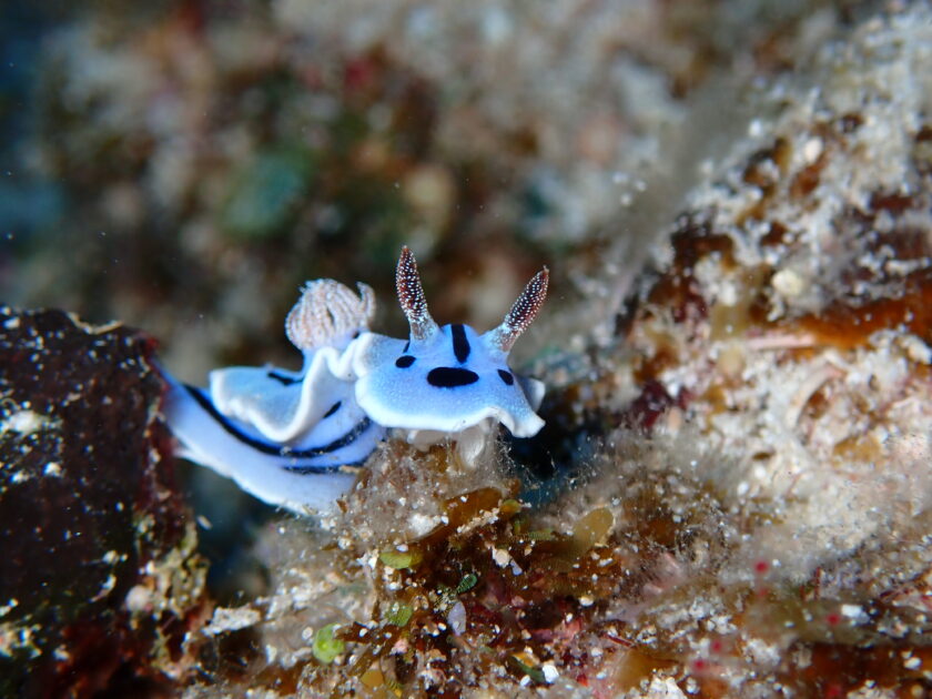 ミゾレウミウシがゆっくりと岩肌を進んでいます。この小さな体で一生懸命生きている姿に感動。マクロ撮影に集中していると、時間が経つのを忘れてしまうほど夢中になれました。