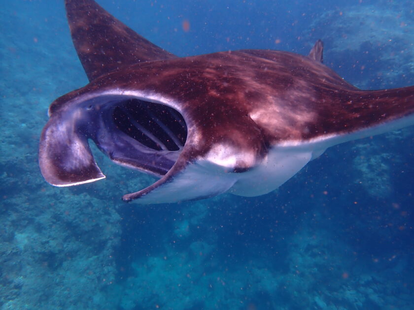 ドドドーンとマンタが大きな口を開けてプランクトンを捕食してるー!