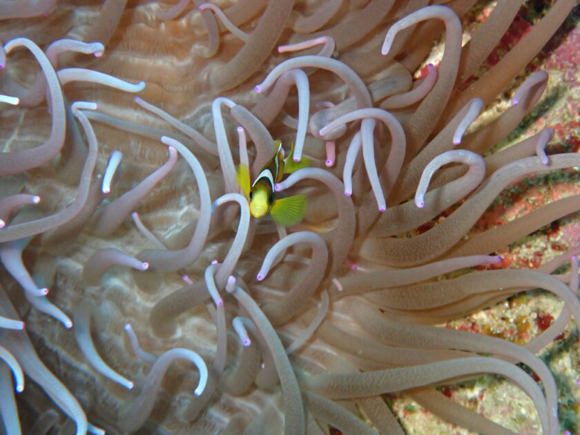ハート型に見えなくもないイソギンチャクにはペアのイソギンチャクエビが!