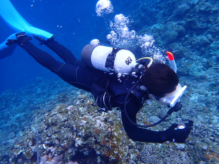 はいさーい!相変わらず窒素は溜まってもお金は貯まらないコーキでーす(^^)/今日はアドバンス講習&ファンダイビングで海へGO~☆彡 気温22.6℃ 水温22℃ 北の風 曇り時々晴れ 【桜口アウトリーフ】透視度20~25m