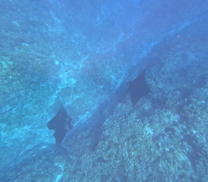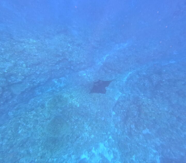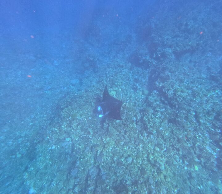 おっ!別のマンタがやって来た~!右のヒレがガッツリ損失してる!サメの歯型でしょうか?たくましく生きておくれ~