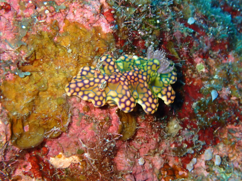 洒落乙なヨセナミウミウシの登場です!サイケデリックな色使いでめちゃ目立ってました!