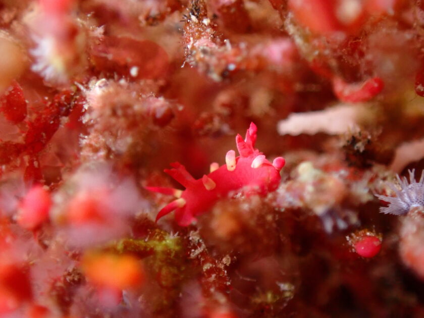 冬の黒島ではよく見かけるアカイバラウミウシ!鮮やかな赤と白の柄がよく目立っててこの子はミニサイズでした!
