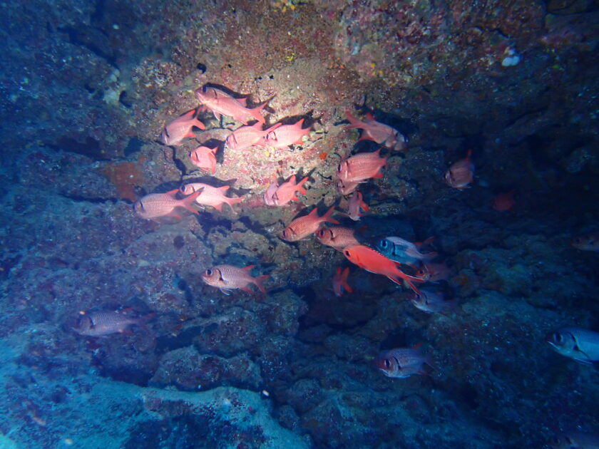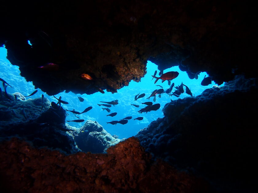 地形好きにはたまらない洞窟へ!中にはミナミハタンポが群れて