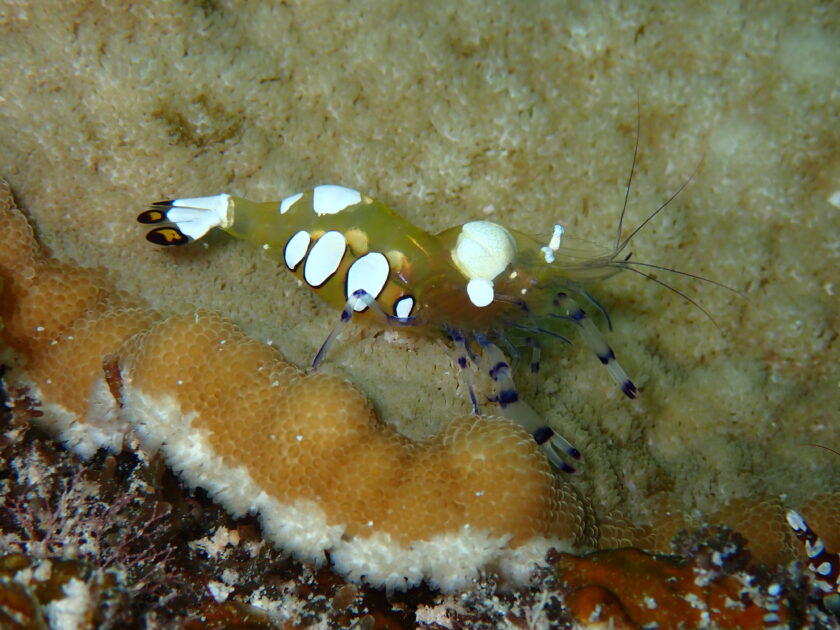 スカシテンジクダイが群れる根にはイソギンチャクエビ&モエビやヒトスジギンポ、サラサゴンベ、カクレクマノミ、ハマクマノミ、ヨスジフエダイなど