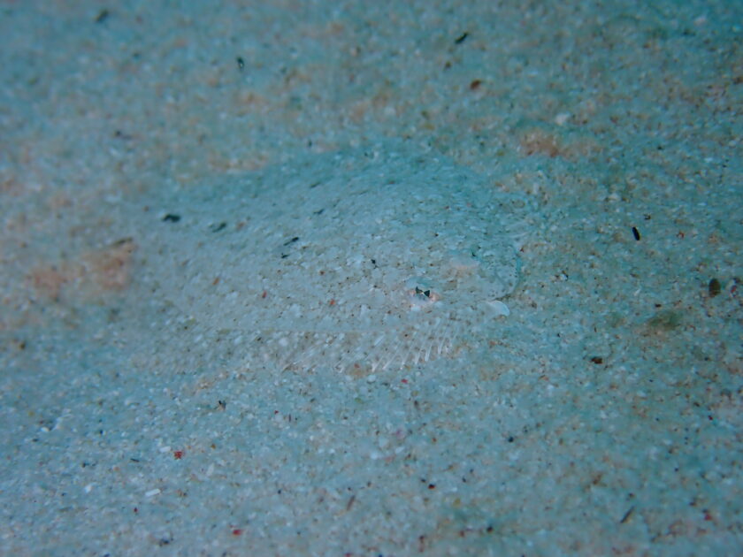 完全に砂に同化していたミニサイズのトゲダルマガレイ