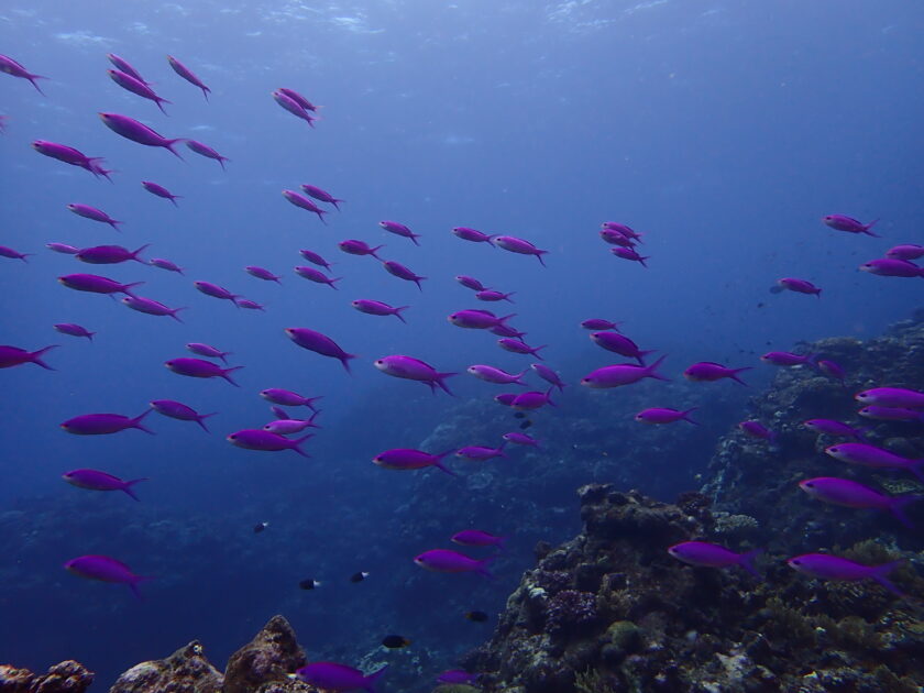 赤紫が綺麗なハナゴイの群れとマンタ待ち