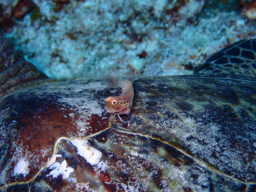 ウミガメの甲羅の上ではイシガキカエルウオがお散歩してました!
