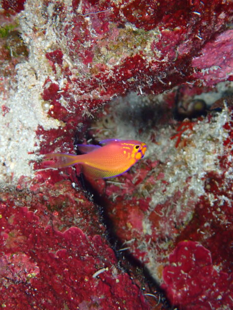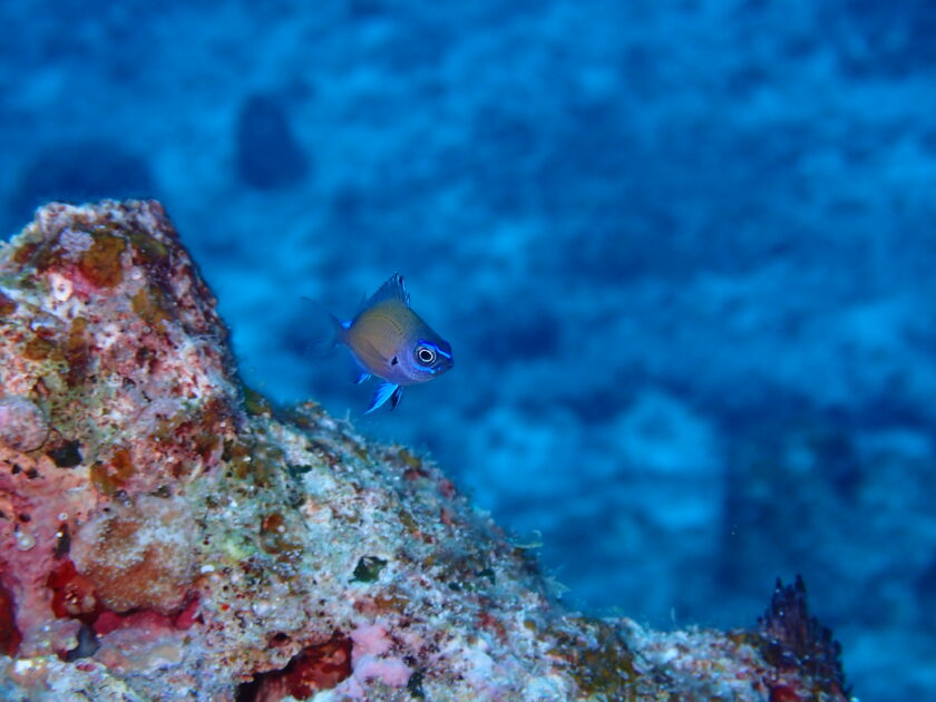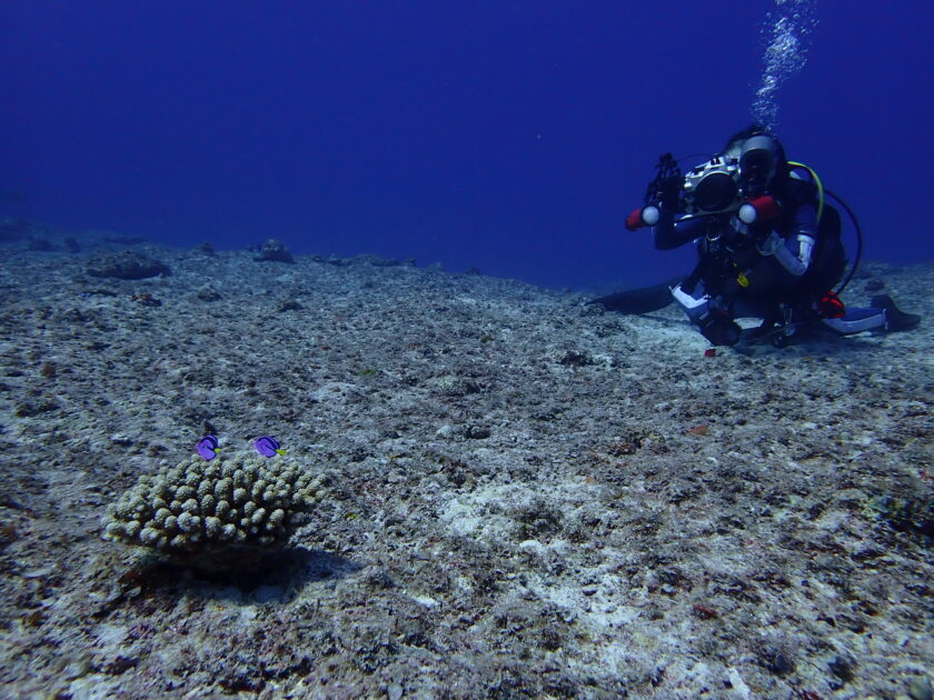 ポツンとサンゴには2匹のナンヨウハギ幼魚