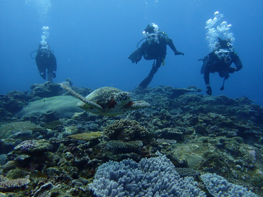 まずはアオウミガメとランデブー