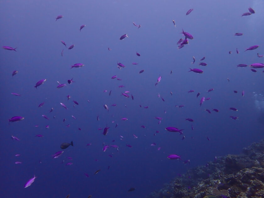 リーフエッジには紫色が綺麗なハナゴイの群れ