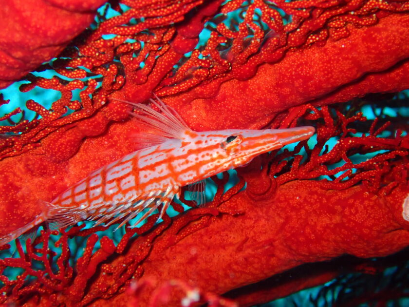 真っ赤なイソバナに住むレアなクダゴンベ