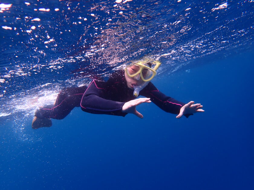 出ました!今日の主役、アオウミガメが青い海を飛ぶように泳ぐ姿は、何度見ても見惚れちゃいますね(^^)/