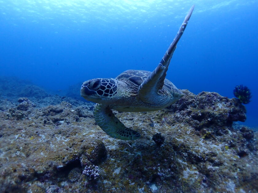 まるで「ようこそ」って言ってるみたいに近づいてきてくれましたぁ!肺呼吸をする爬虫類ですが、水中を飛ぶように泳ぐ姿はいつ見ても神々しい!
