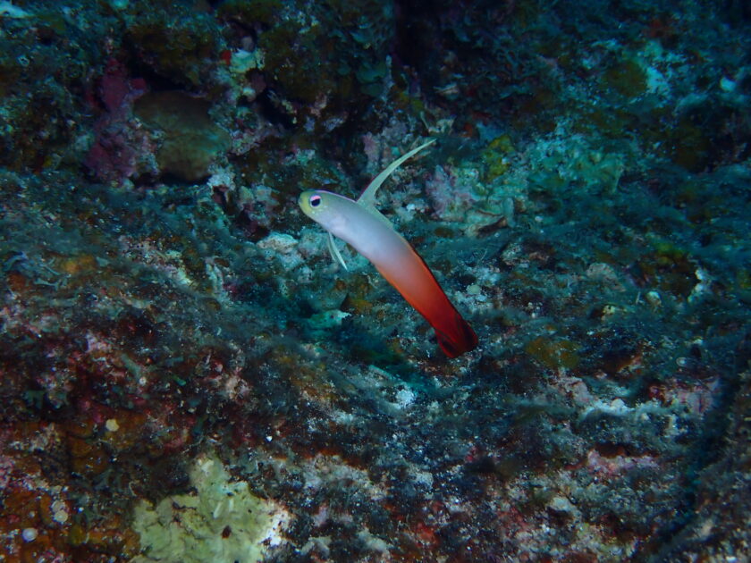 ホバリングしながら、背びれパタパタのハタタテハゼ