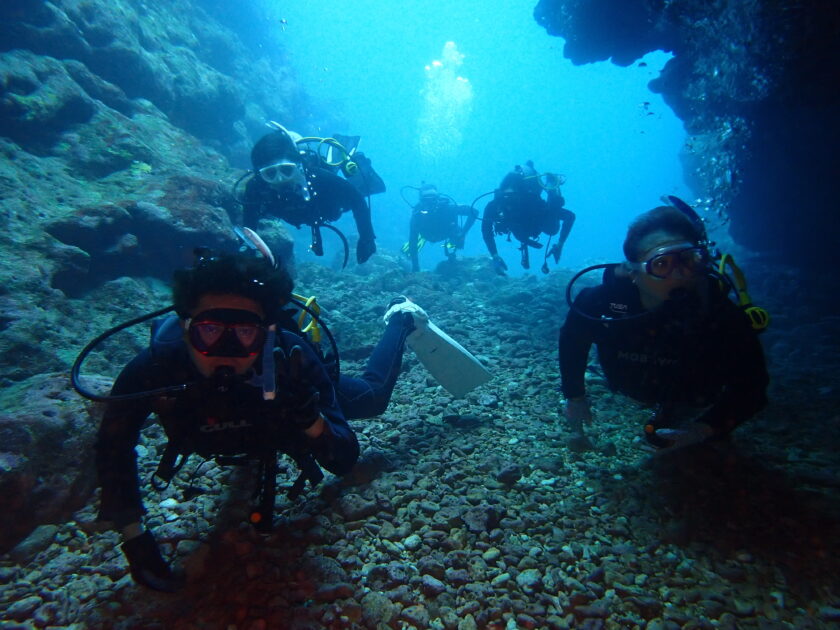 大きな洞窟内へ~中にはアカマツカサやハタンポがいて