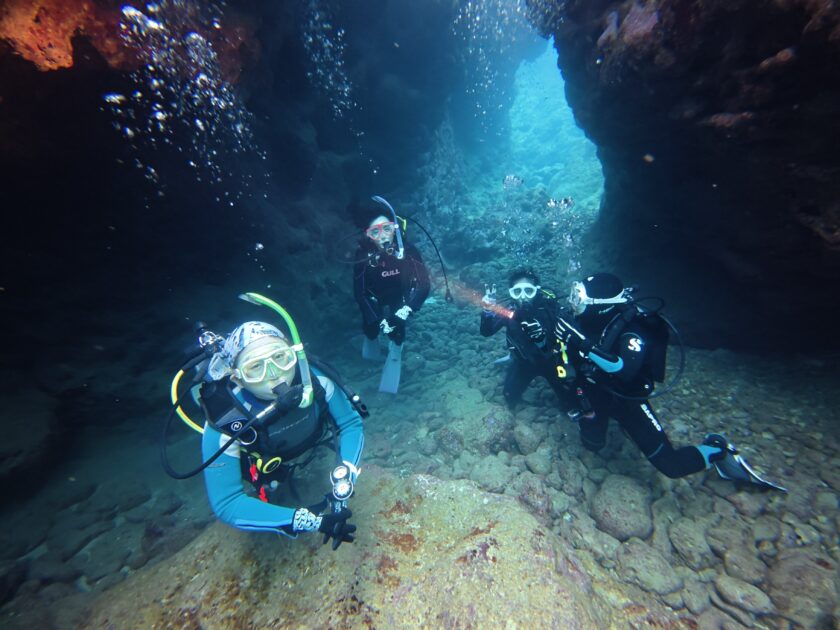 ファンダイビングでは洞窟内でアカマツカサやツバメタナバタウオ&アオギハゼなどに逢えて