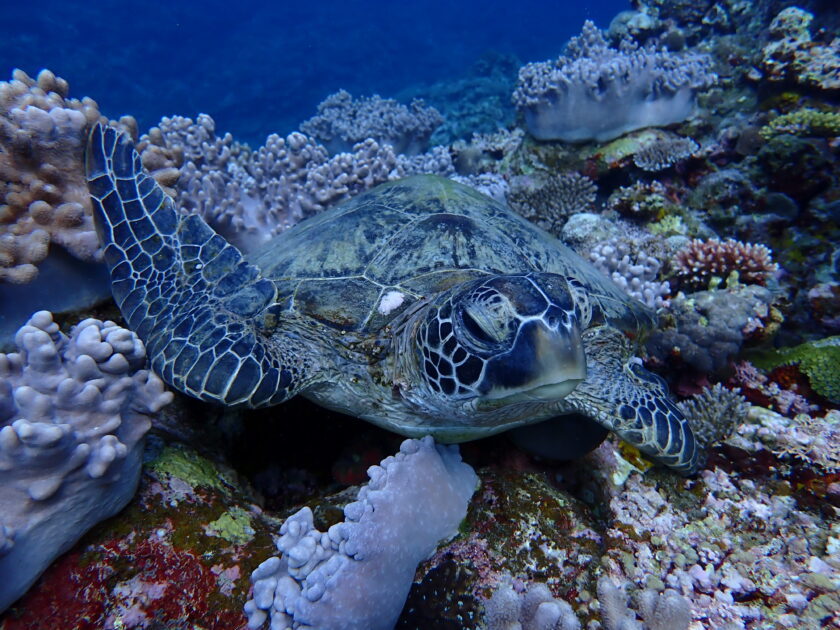 沖合のリーフでいつも休憩してるアオウミガメ!