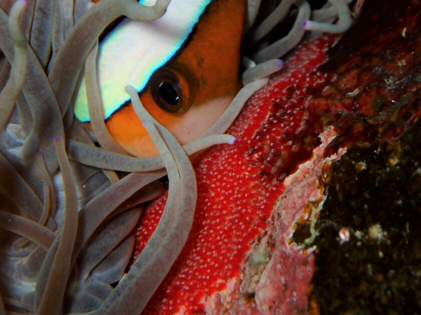 ハナブサイソギンチャクに住むイソギンチャクエビ