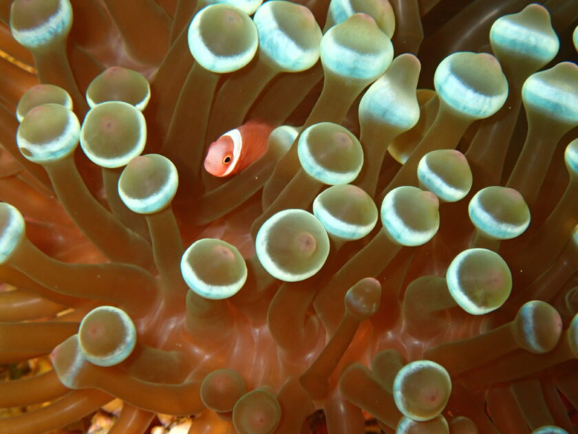 タマイタダキイソギンチャクに住むハマクマノミbabyや