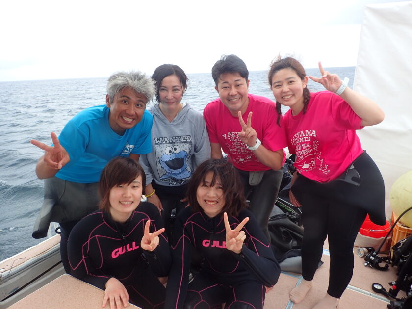 はいさーい!窒素は溜めてもお金は貯めないコーキでーす(^^)/ 今日は久しぶりに晴れましたよー石垣島 リピーターのYさん記念の200本メモリアルでした☆彡 気温28℃ 水温26℃ 透視度10~15m 東北東の風 晴れ 大崎エリア 中層を泳いでいるとグルクマの群れがガパーっと口を開けて通り過ぎて 砂地の水底には大きなマダラエイが休憩中 白いボディに黒いドット柄(碁石柄)のニセゴイシウツボは 水面を見上げて黄昏てました! 水深25m付近で観察できるスミレナガハナダイ♂ こちらは♀です! 常に潮の流れる方向を向いているチンアナゴたち 流れてくるプランクトンを食べているそうな 尾びれが長くてめちゃ綺麗なマルスズメダイBABY 成魚になるとヒレの割合は長くなります! サフランイロウミウシ!確かにサフラン色だ 左手を何故そうしてるのか気になるアオウミガメ 泳いで水面へ上がっていくカメってなんか素敵(⋈◍>◡<◍)。✧♡ コブシメはまだ観察できてます!3個体が居ましたよ~ リピーターのYさん記念の200本ダイブ~ メモリアルな瞬間に立ち会えて光栄でーす! これからも一緒にいっぱい潜りましょーねー(^^)/