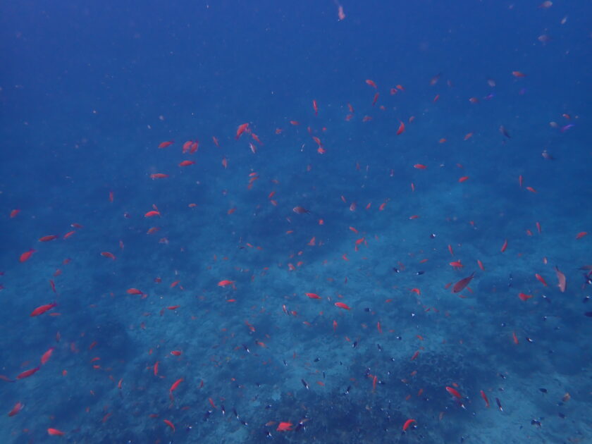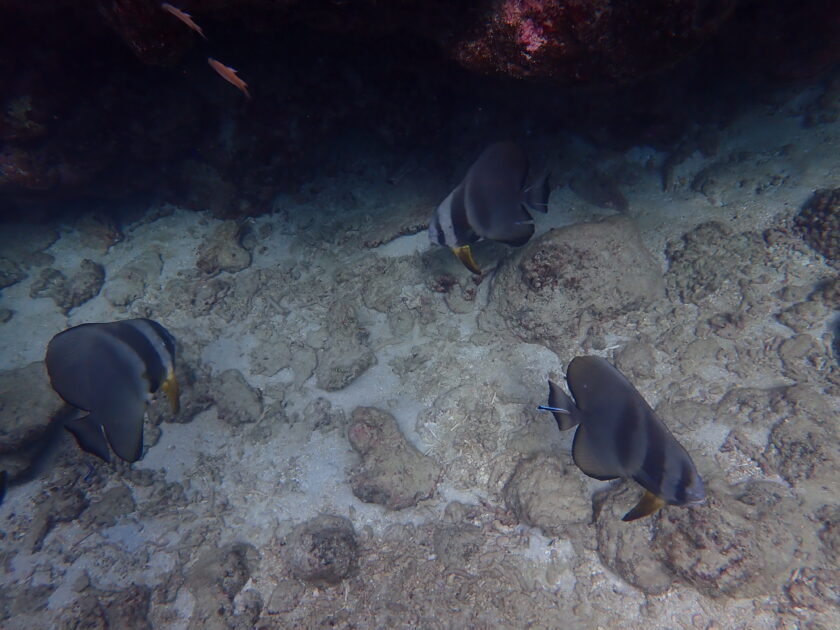 はいさーい!相変わらず窒素は溜まってもお金は貯まらないコーキでーす(^^)/ 今日はシュノーケリングで大崎エリアの海へGO~☆彡 気温30℃ 水温25℃ 北東の風やや強く 曇り時々晴れ 【大崎ハナゴイリーフ】透視度20m アカネハナゴイやキンギョハナダイ、ハナゴイ、シコクスズメダイ、ロクセンスズメダイなどが集まり 岩陰には3匹のツバメウオが仲良くホンソメワケベラのクリーニング中 沖合では泳ぐアオウミガメなどに逢えました(^^)/