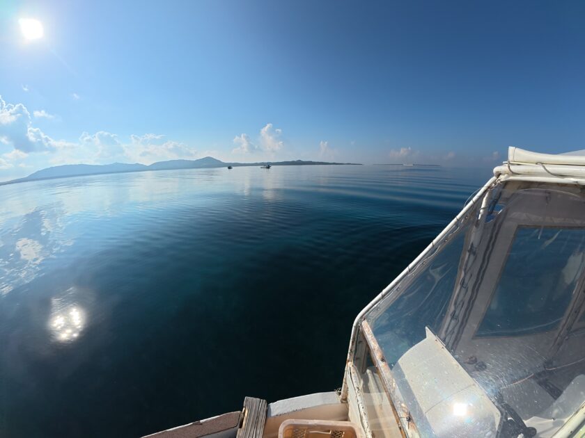 朝は無風でベタ凪の湾内は湖のようでした! 気温33℃ 水温28℃ 東の風 晴れ 【名蔵湾ロコモコ】透視度20m